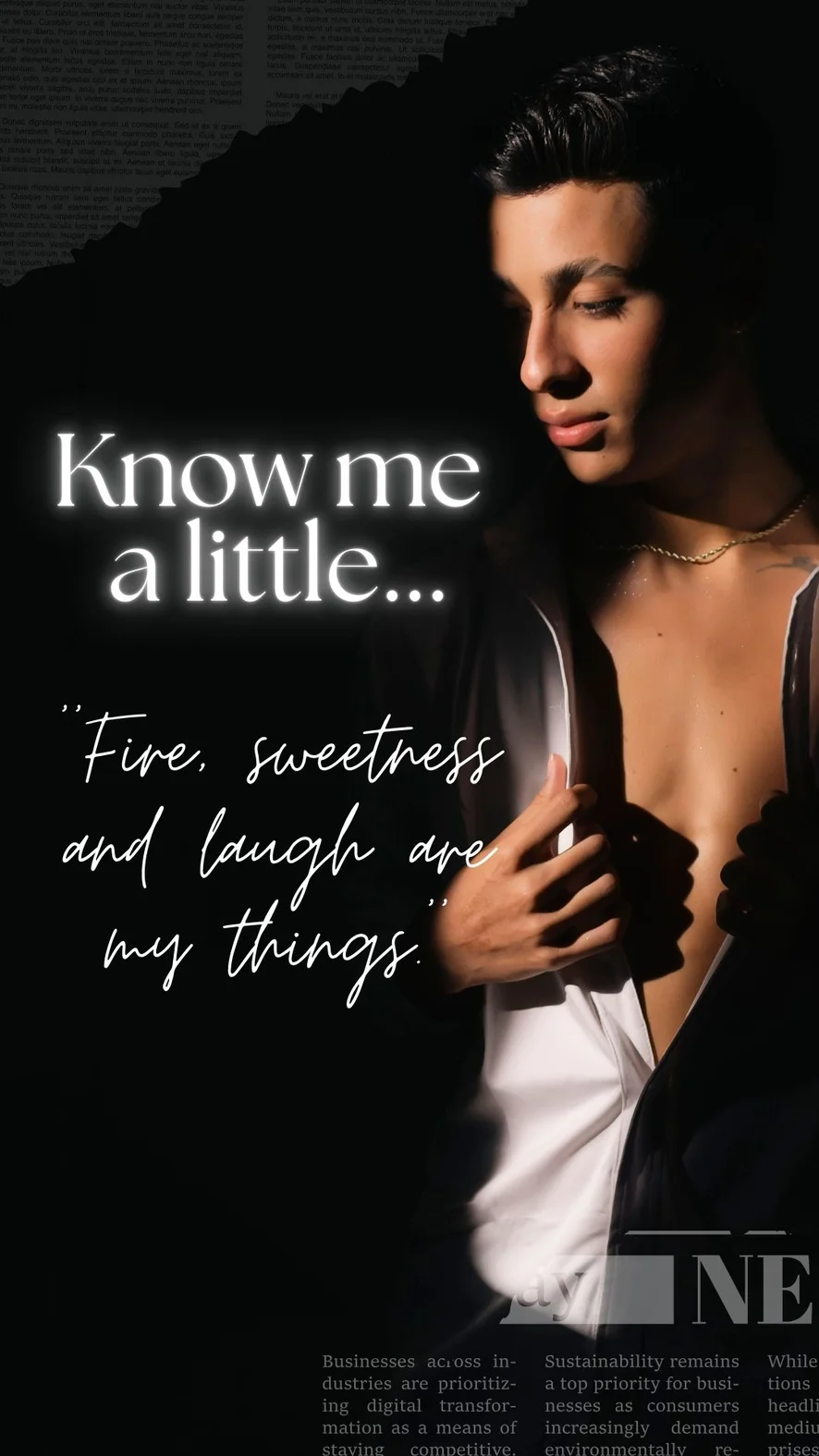 Soy una persona sexy, no solo por cómo me veo, sino por cómo me muevo, cómo pienso y cómo vibro con el mundo. Me gusta cuidar mi presencia, sí, pero lo que más me importa es conectar de verdad. Tengo una mirada que escucha, una sonrisa que acoge, y una energía que hace sentir a los demás en confianza.