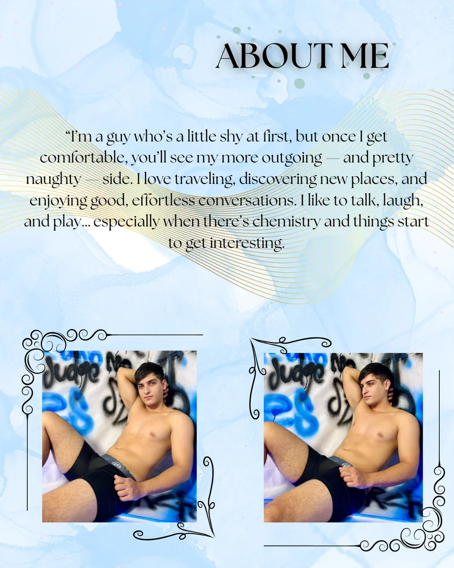 I’m a guy who’s a little shy at first, but once I get comfortable, you’ll see my more outgoing — and pretty naughty — side. I love traveling, discovering new places, and enjoying good, effortless conversations. I like to talk, laugh, and play… especially when there’s chemistry and things start to get interesting.