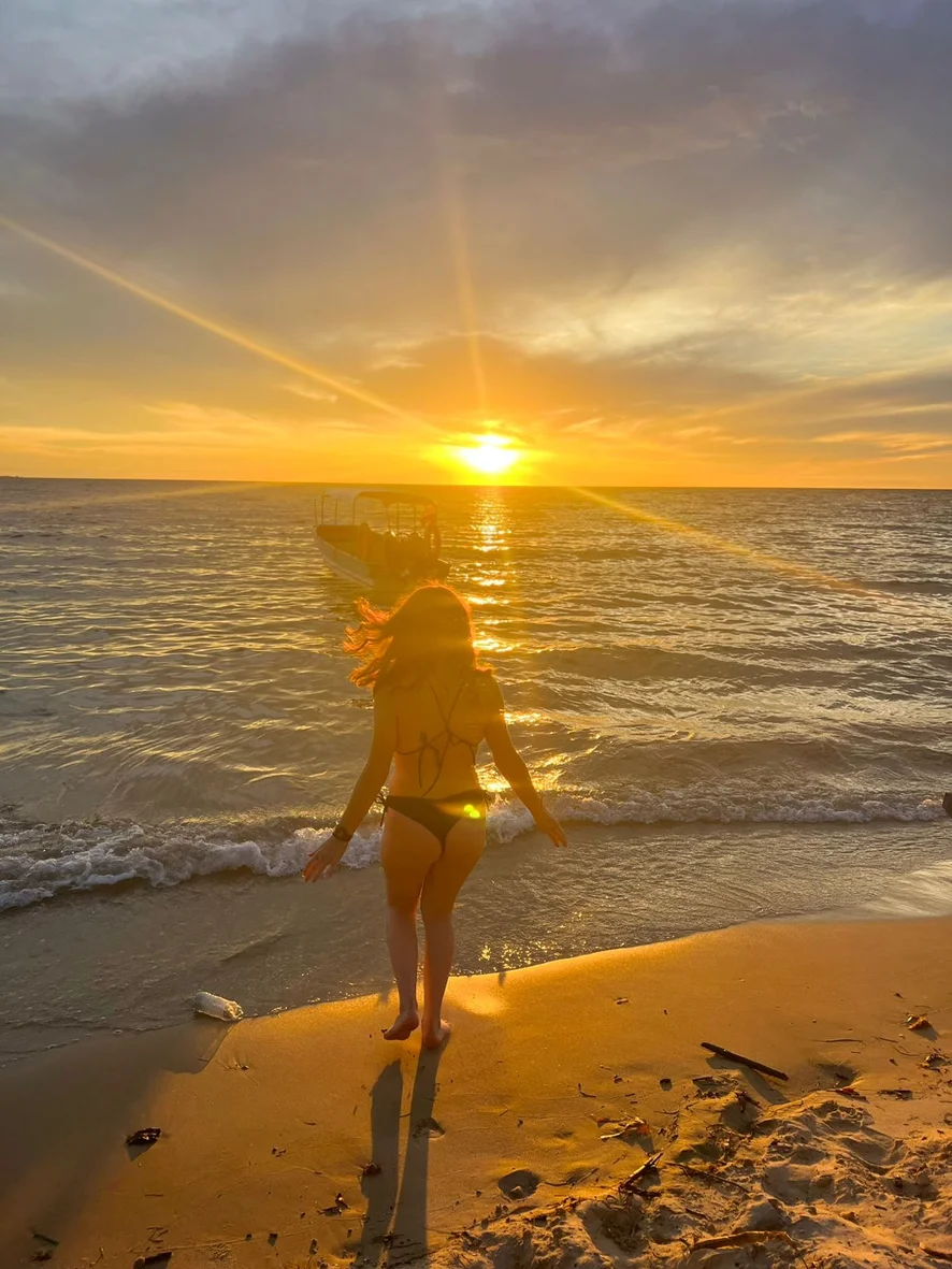Sunset rays caressing porcelain skin