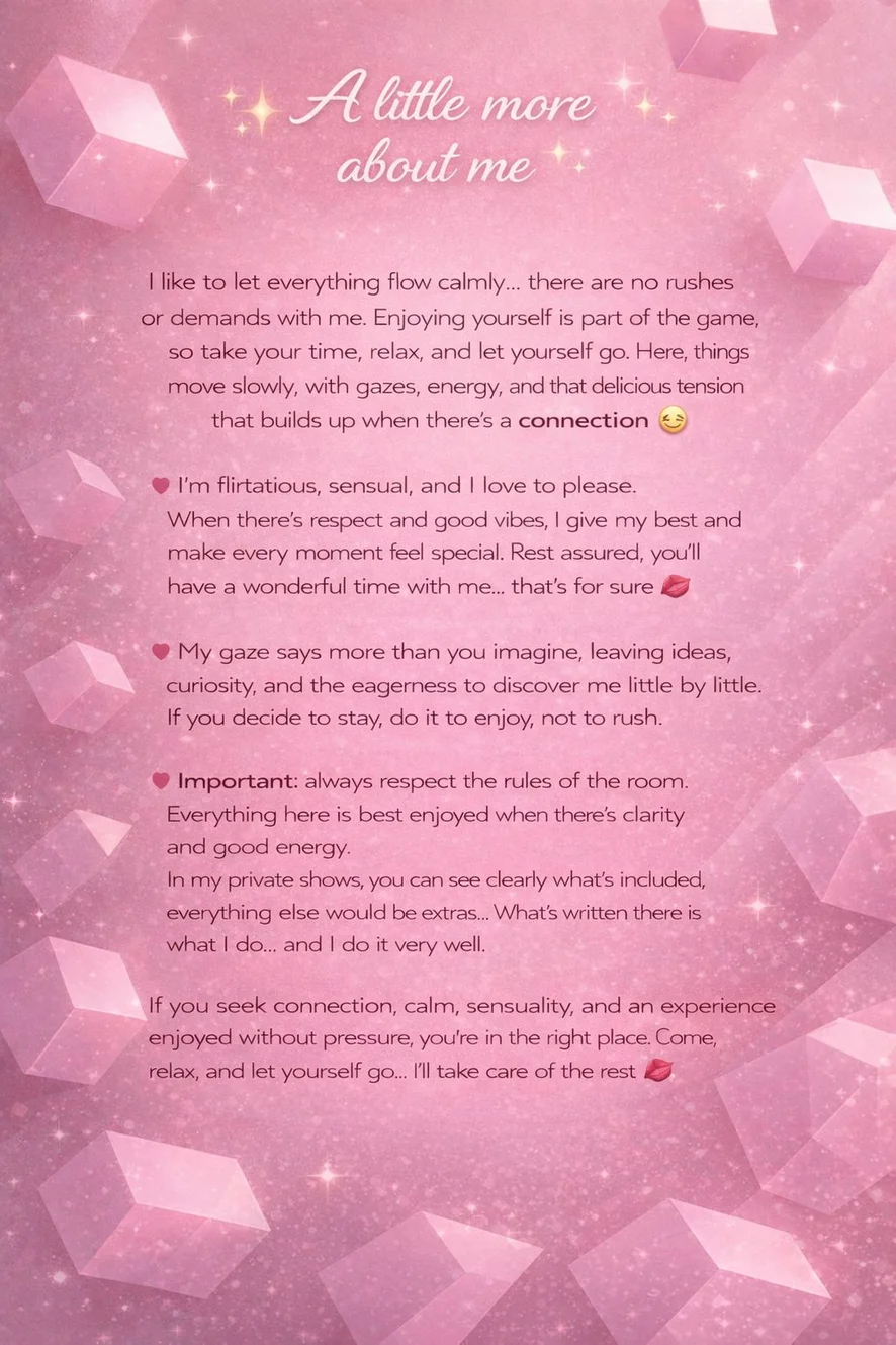 I am a Latina with an intense look and black hair that falls like an invitation. Flirtatious by nature, playful and always ready to ignite the fantasy. I love creating connection, chemistry and that touch of mischief that makes every moment special.