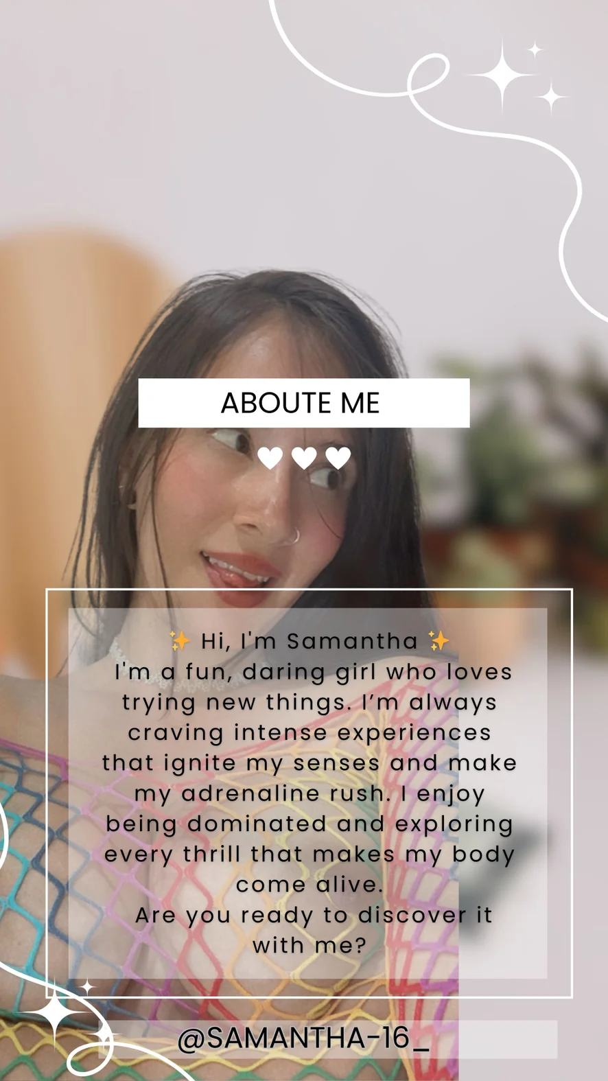 I’m Samantha, and you just unlocked my VIP club. Only the finest get in... so behave, or misbehave — I like both.