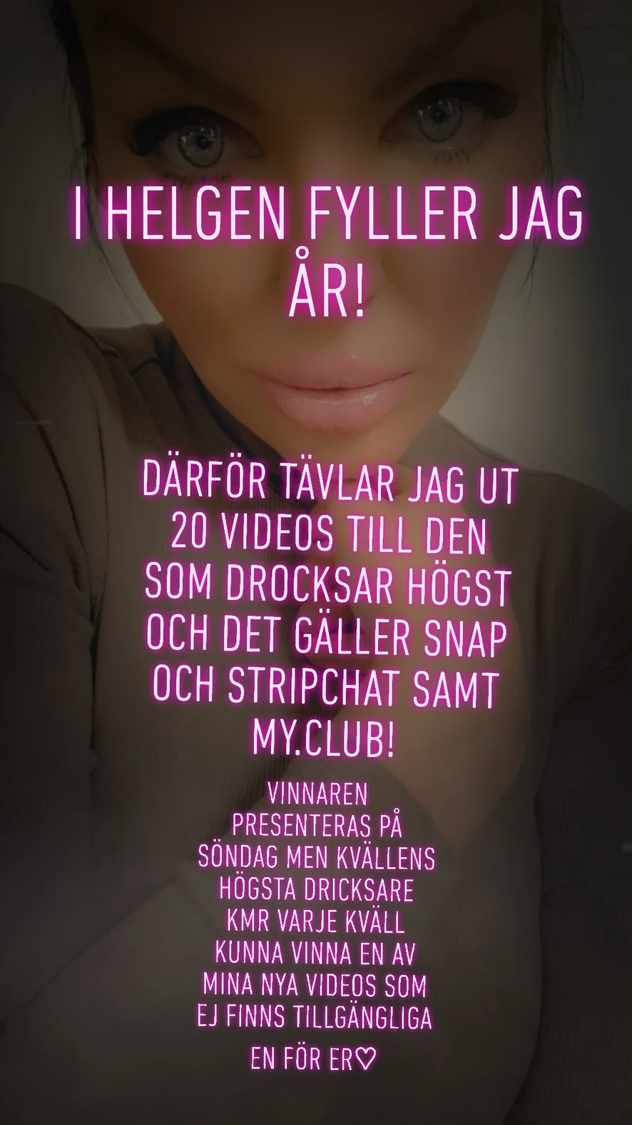 Vem spenderar mest fram till julafton!?!?? Gäller köp av videos/camshow/bilder/fanclub och övrig dricks!! 1a pris Årets alla filmer! Och bilder! Och en liten surprise😉 2a pris 10 videos och 10 bilder 3-5 pris 10 bilder och 3 videos Tröstpris för er som spenderat minst 200tokens 1 video För mer info dricksa, lägg till mig som vän om du inte gjort det ännu och skriv till mig