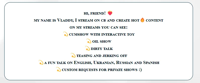 Masturbation, Flashing, Handjob, Ejaculation, Dirty Talk, Flexing, Foot Fetish, Anal, Deepthroat, Dildo or Vibrator, Selfsucking