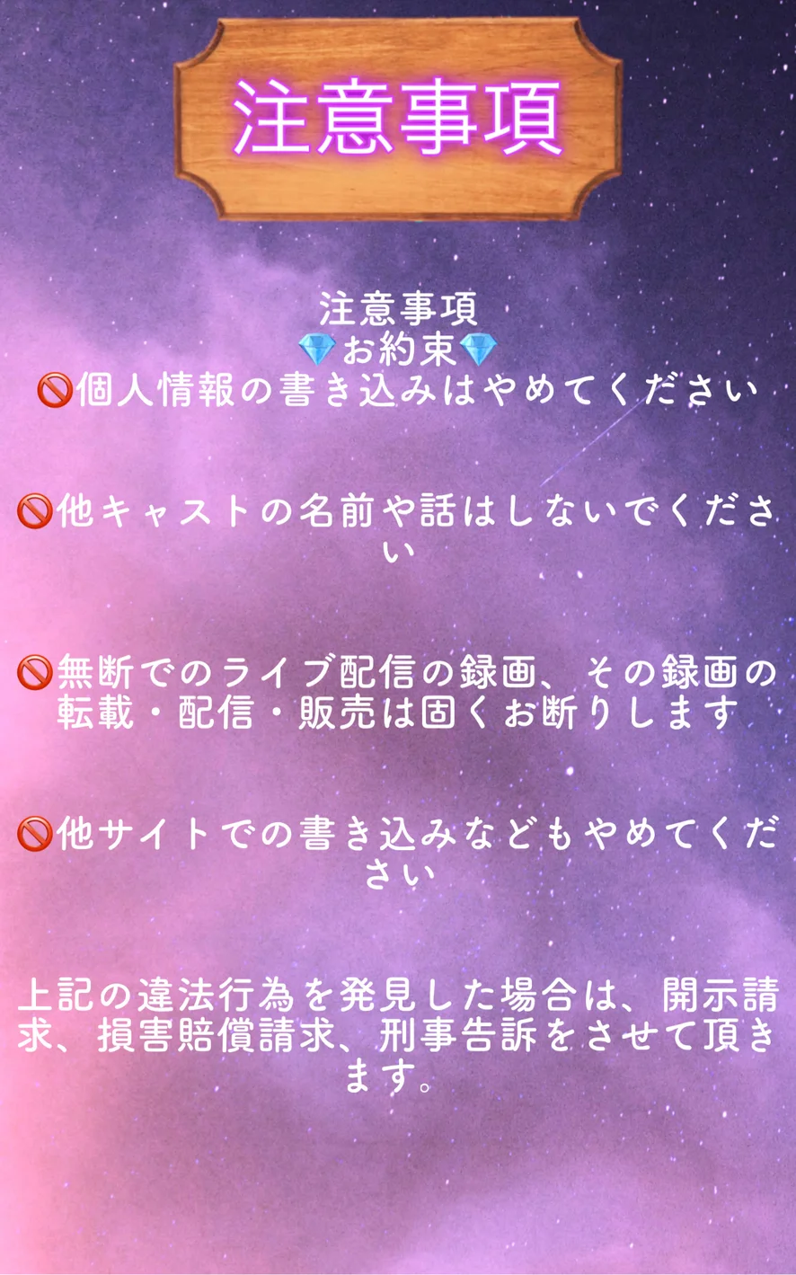 🚫無断でのライブ配信の録画、その録画の転載・配信・販売は固くお断りします
